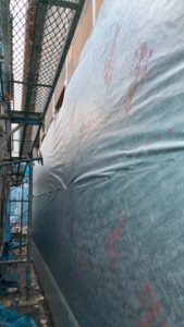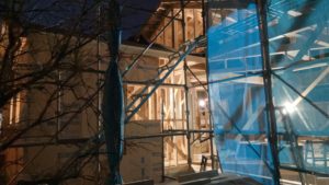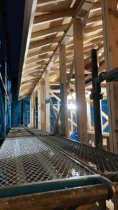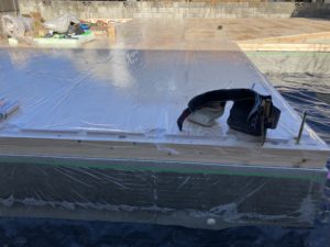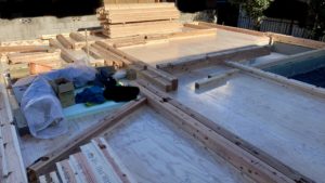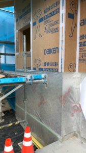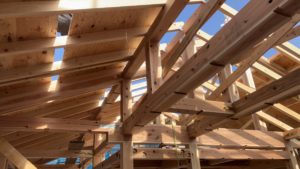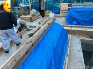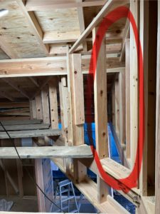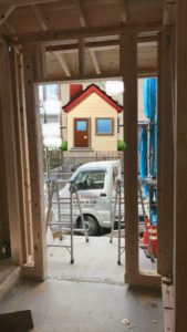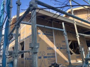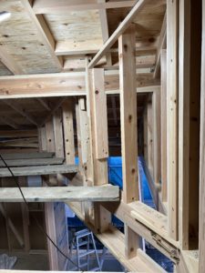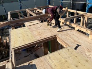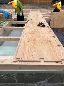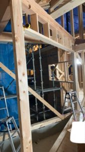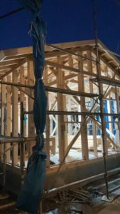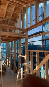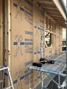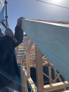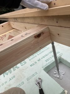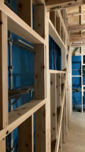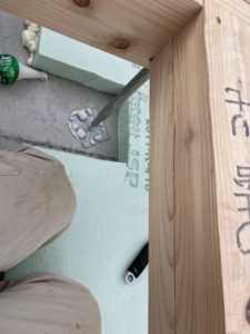 断熱は柱内面平らになるように入れていくし、気密シートも貼って行くので、気密シートをやってからだとヒラヒラしていて、上手く墨が打てない。
