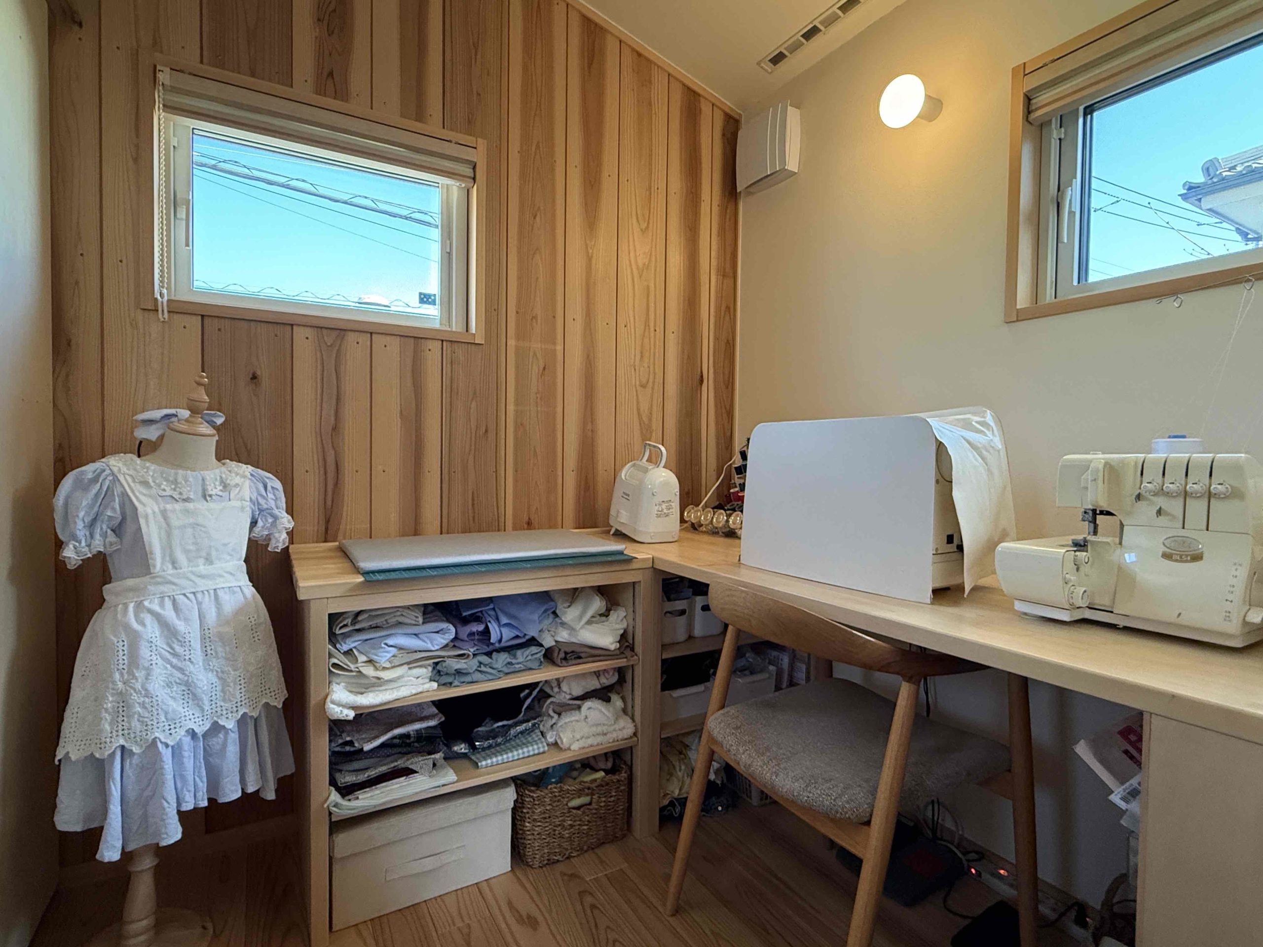 趣味の空間で、子供の服を作ったりと、