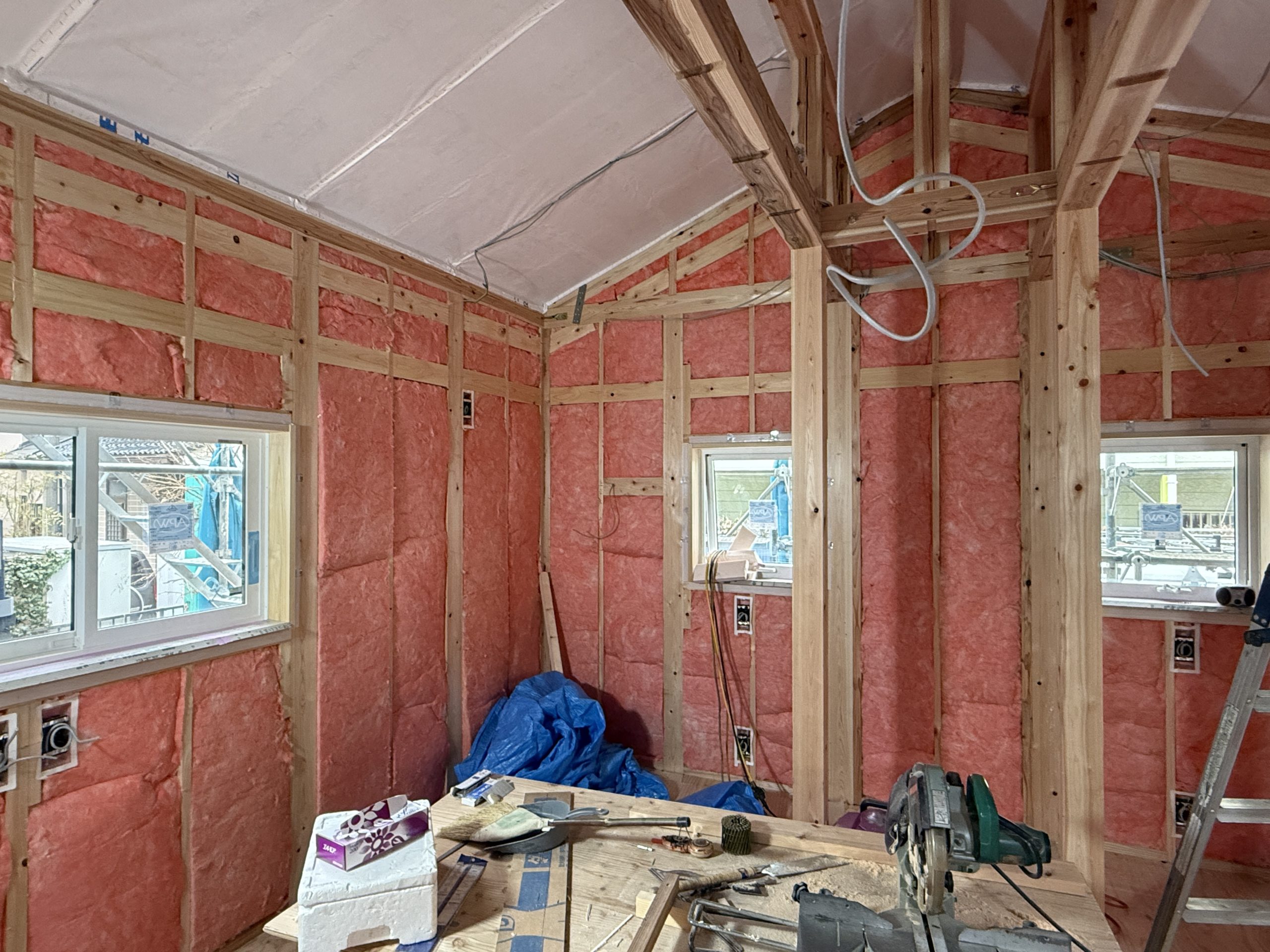 内部も断熱材の施工が進み、壁はほとんどの場所で施工が終わりました。