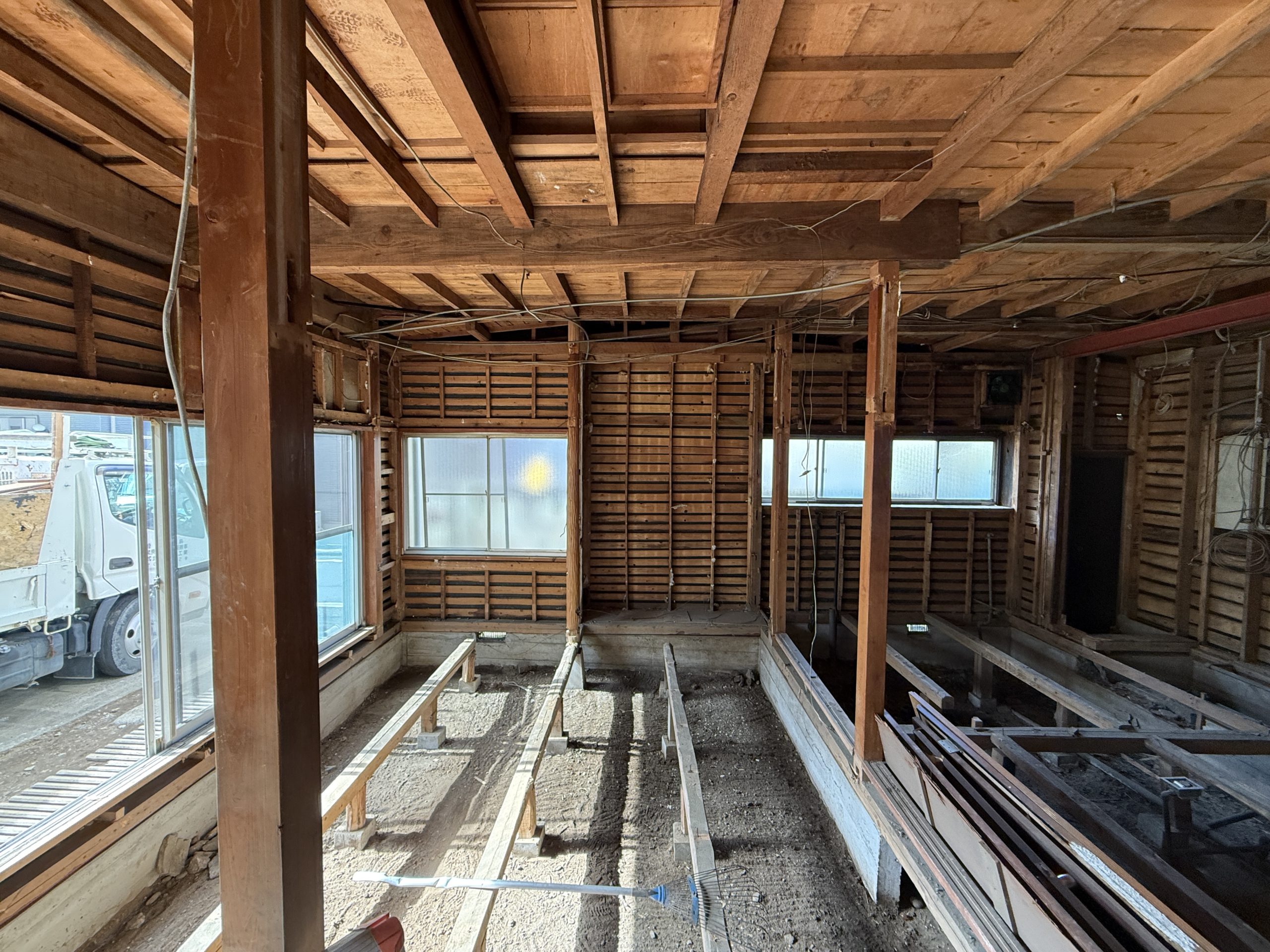 築50年くらいらしいのですが、なんと筋交いが一本も入っていないという造りで、