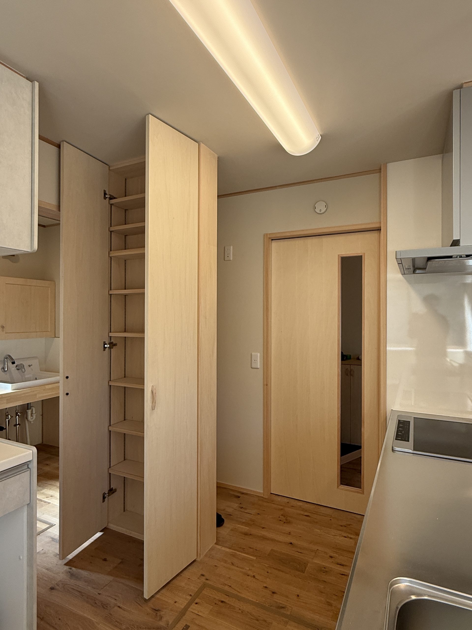 冷蔵庫置き場の隣のスペースに作ったパントリーがお気に入り(≧▽≦)