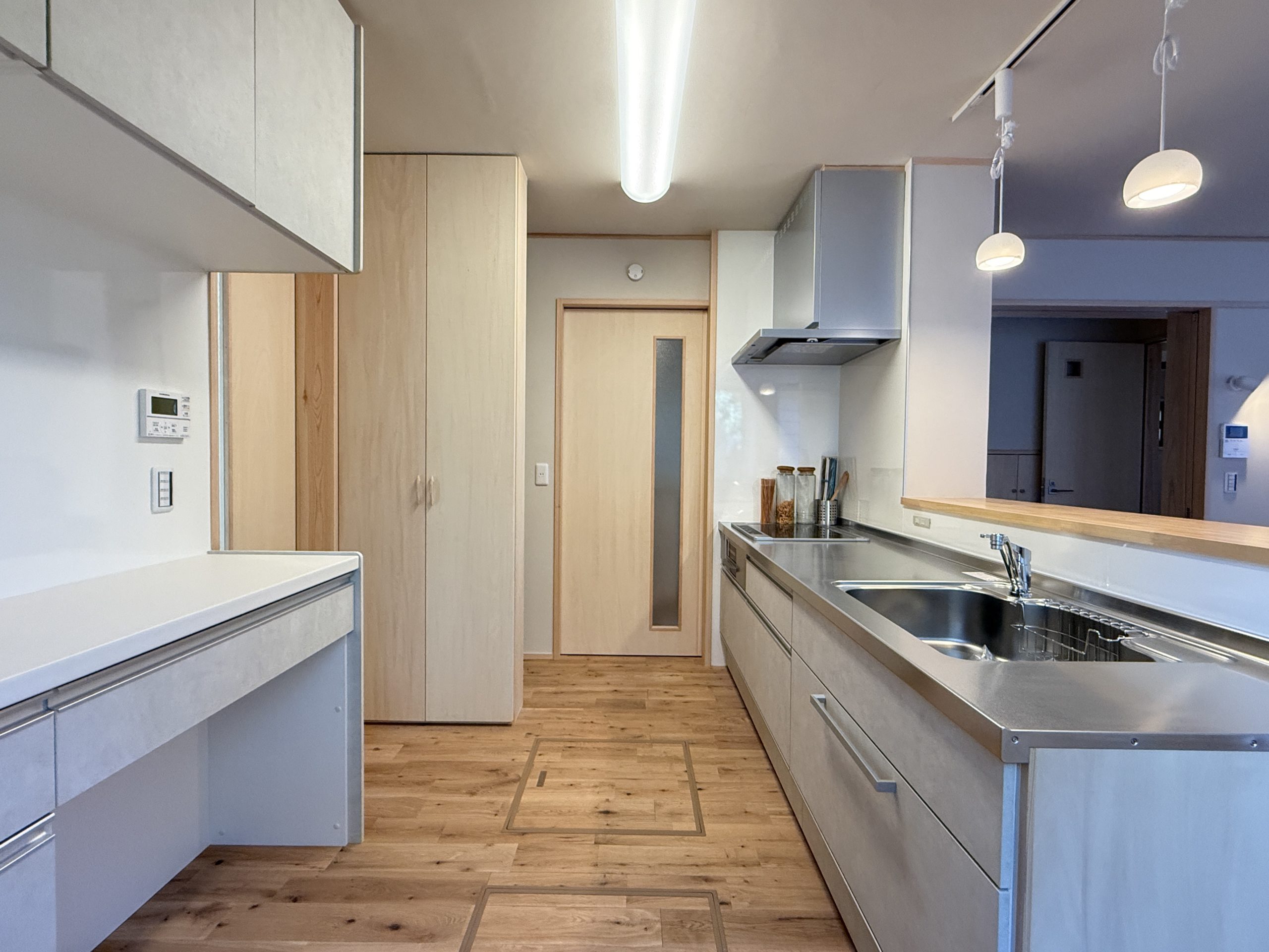 L型のオープンキッチンは、対面キッチンへと変えました