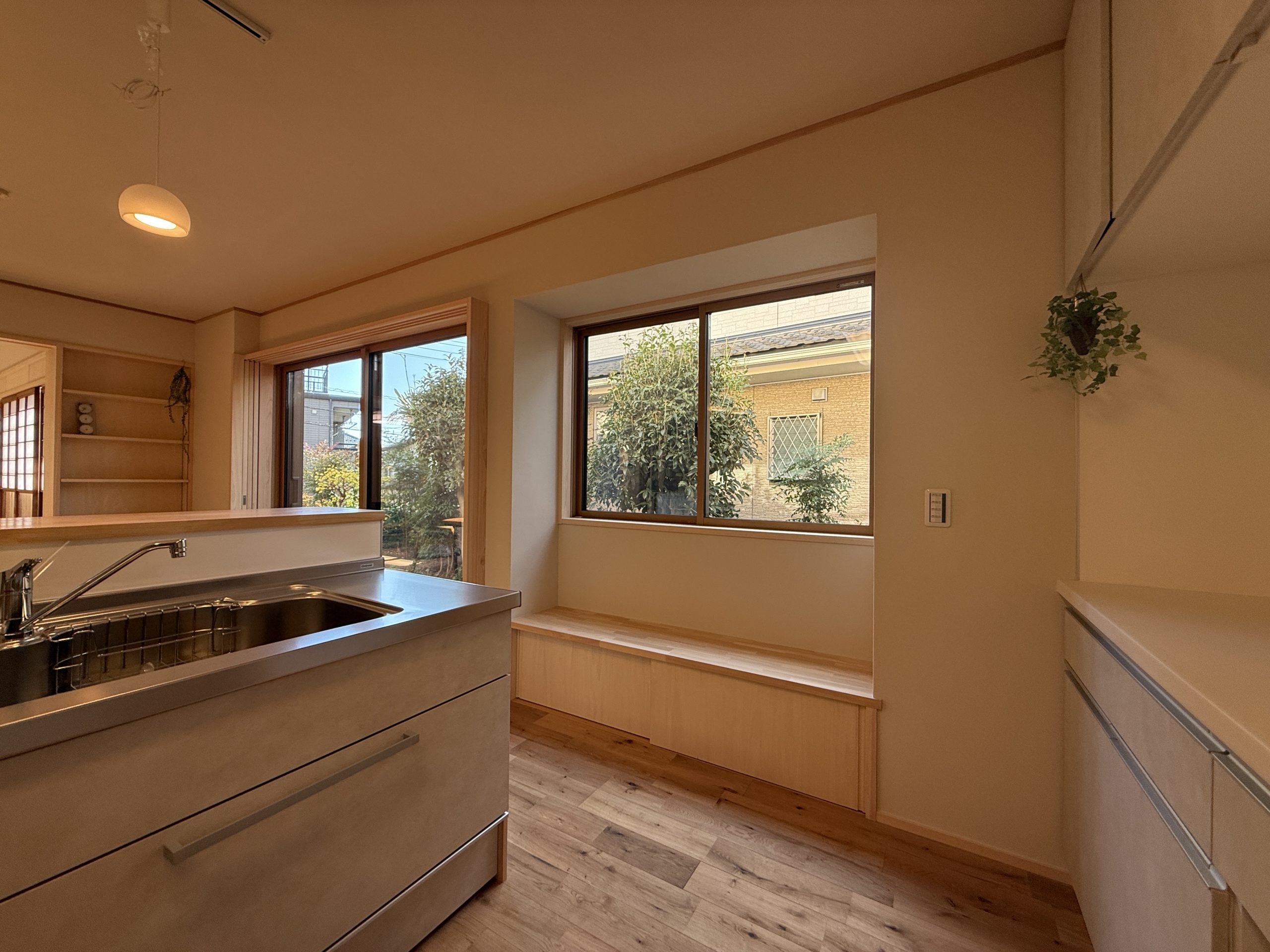 個人的には、キッチン横の出窓ベンチと