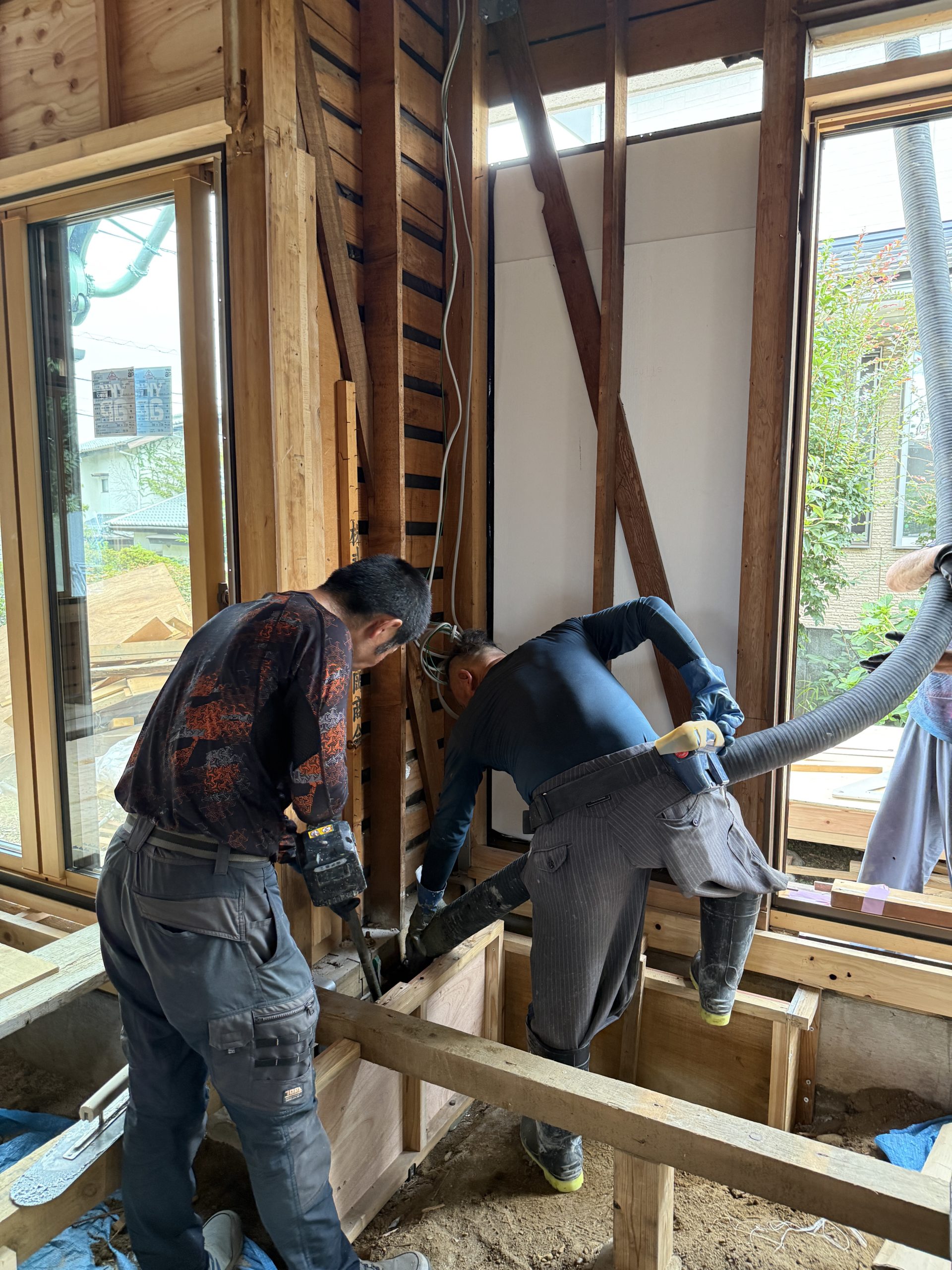壁の補強や断熱施工は根太施工に先行して終わらせておきます。