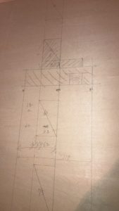 今回入り口枠1箇所だけなんですが、現寸図は書きます。これを書くことで鴨居や格子、格子受けの納まりがわかり、
