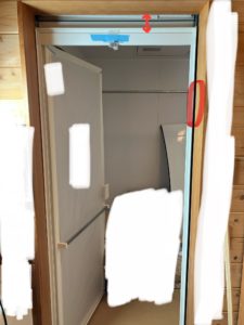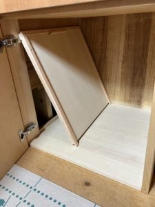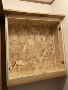 開き戸付き(建具はまた後ほど)収納とトイレットペーパー大容量収納の2箇所造りました🫡