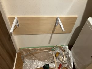そして棚をつけて欲しいと連絡をもらったんで、材料はお客様に用意してもらったんですが、折りたたみ棚取り付けて差し上げました^_^