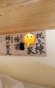 ロフトに飾らせている上棟看板。