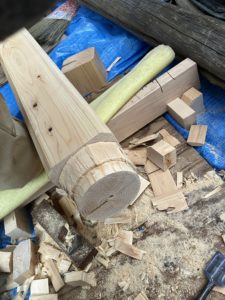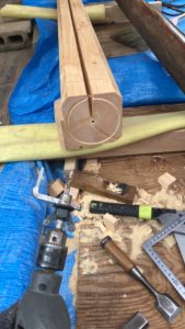 化粧桁の水平を見て長さを取ったら、上下のホゾと大入れ造ります。