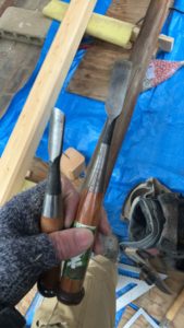そのあとは胴付きにノコ目を入れながら、丸鑿でコツコツ🔨