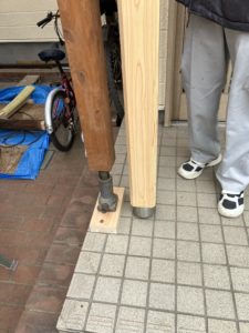 今日は玄関ポーチ柱取り替え工事の現場へ。