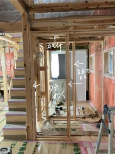 社長の設計は吊戸引き込み建具が定番。それなんで建具を引き込む戸袋を造っていく納めなんです。