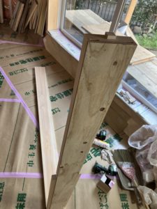 作業場加工して、狂わないようにレール溝に左側の木を仮にはめ込んでおいたんですが、枠を取り付ける際もレール溝からビスどめすることもあるし、建具屋さんがレール取り付ける時も残りが少ないと、割れてしまうし、ビスも空回りして効かない。