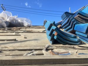 先週とは打って変わって解体屋さんと瓦降ろしから。板金屋根に葺き替えるのかな^_^