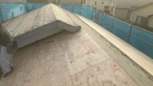 5人➕社長も一時手伝ってくれて夕方、風強しでしたが野地コンパネも貼り出せました^_^