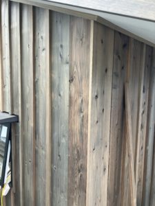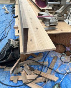 コーナー2つに見切りを取り付けてオーバーハング。コンクリートも一段上がっているので、丸ノコが後から入らない。それなんで下端もキッチリ決めて…。半日でいけるかなと思ってたけど。やっぱりな…😅