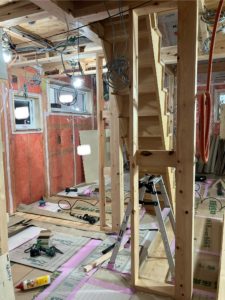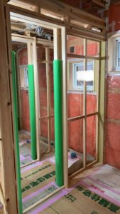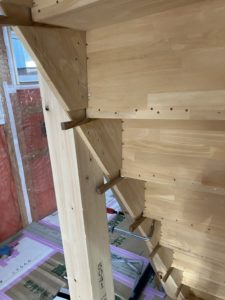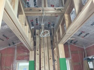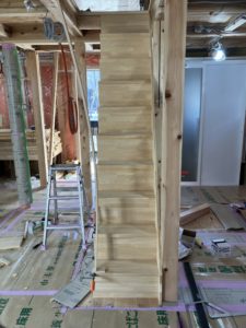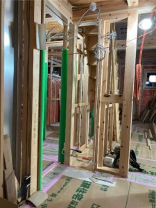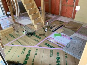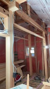 でも間仕切り壁下地を造ってしまうと、壁ボードを運んで貼るっていう作業がやりづらくなってしまう。