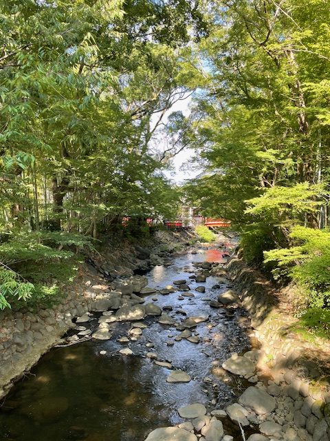 小京都風の竹林や川のせせらぎ