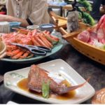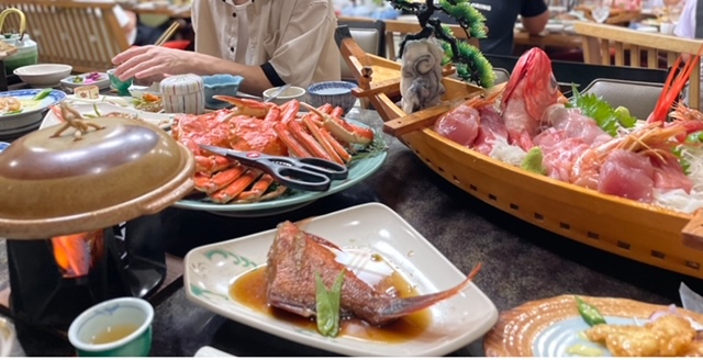 そして夕飯がとにかく豪華で、舩盛りとカニ付きでした。
