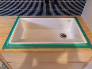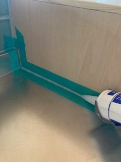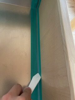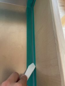 まずはマスキングテープで下準備!勝負はここで決まります。テープが密着していないと、施工後のシリコンがめくれてしまったり波打ってしまったり。